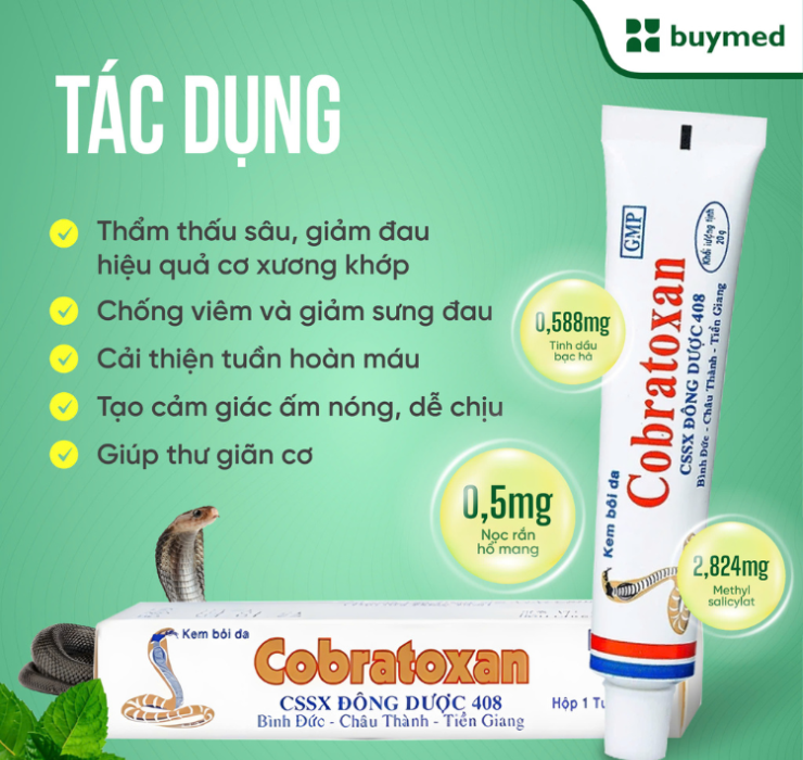 Kem xoa nọc rắn Cobratoxan giảm đau sâu cơ xương khớp hiệu quả