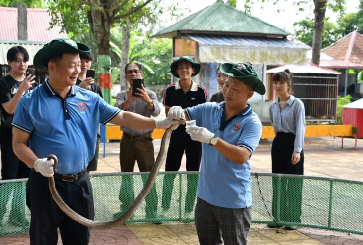 Du khách khi đến trại rắn tham quan được trải nghiệm xem cán bộ trại rắn lấy nọc rắn trực tiếp